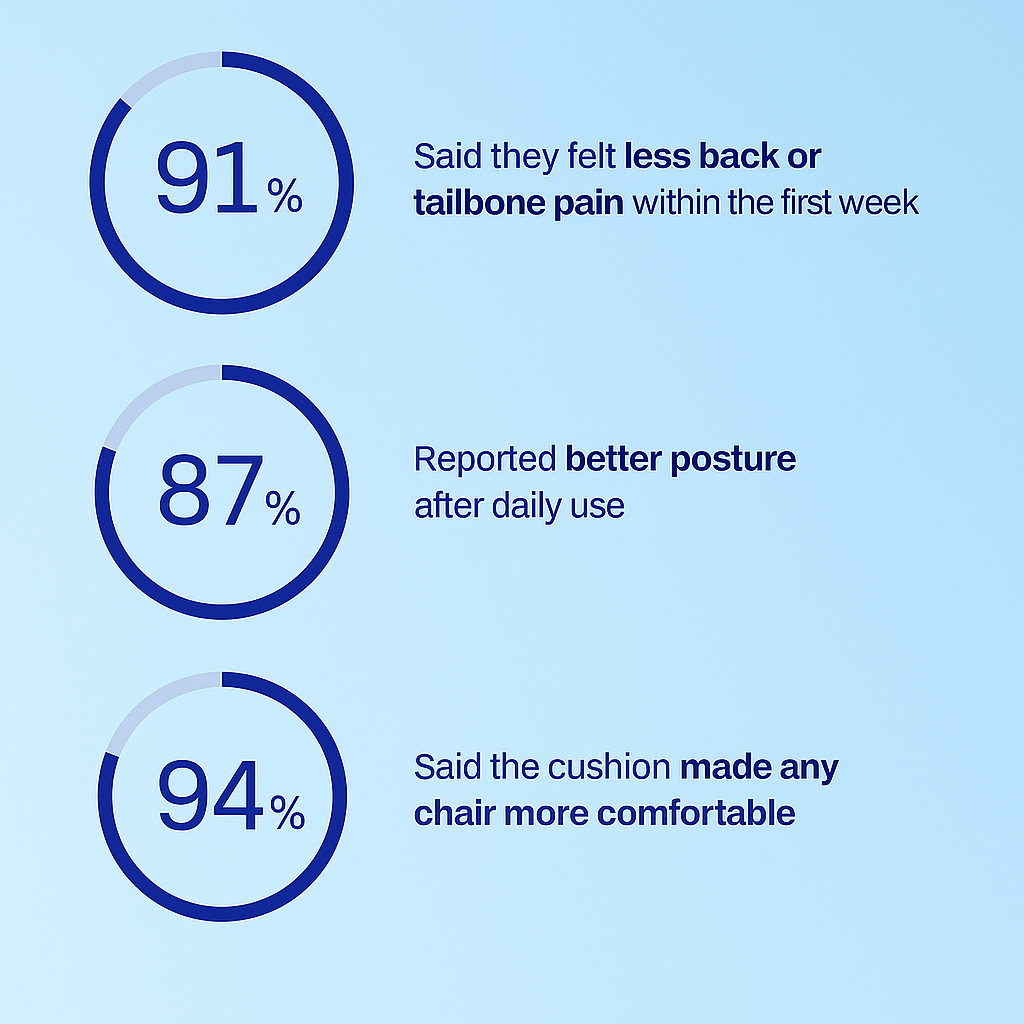 Designed to evenly distribute your body weight and reduce pressure on your hips and thighs, this cushion helps encourage natural blood flow while you sit. No more numbness, tingling, or stiffness — just steady comfort and better energy throughout your day.